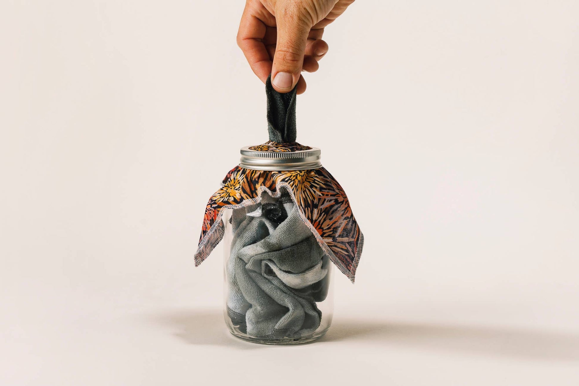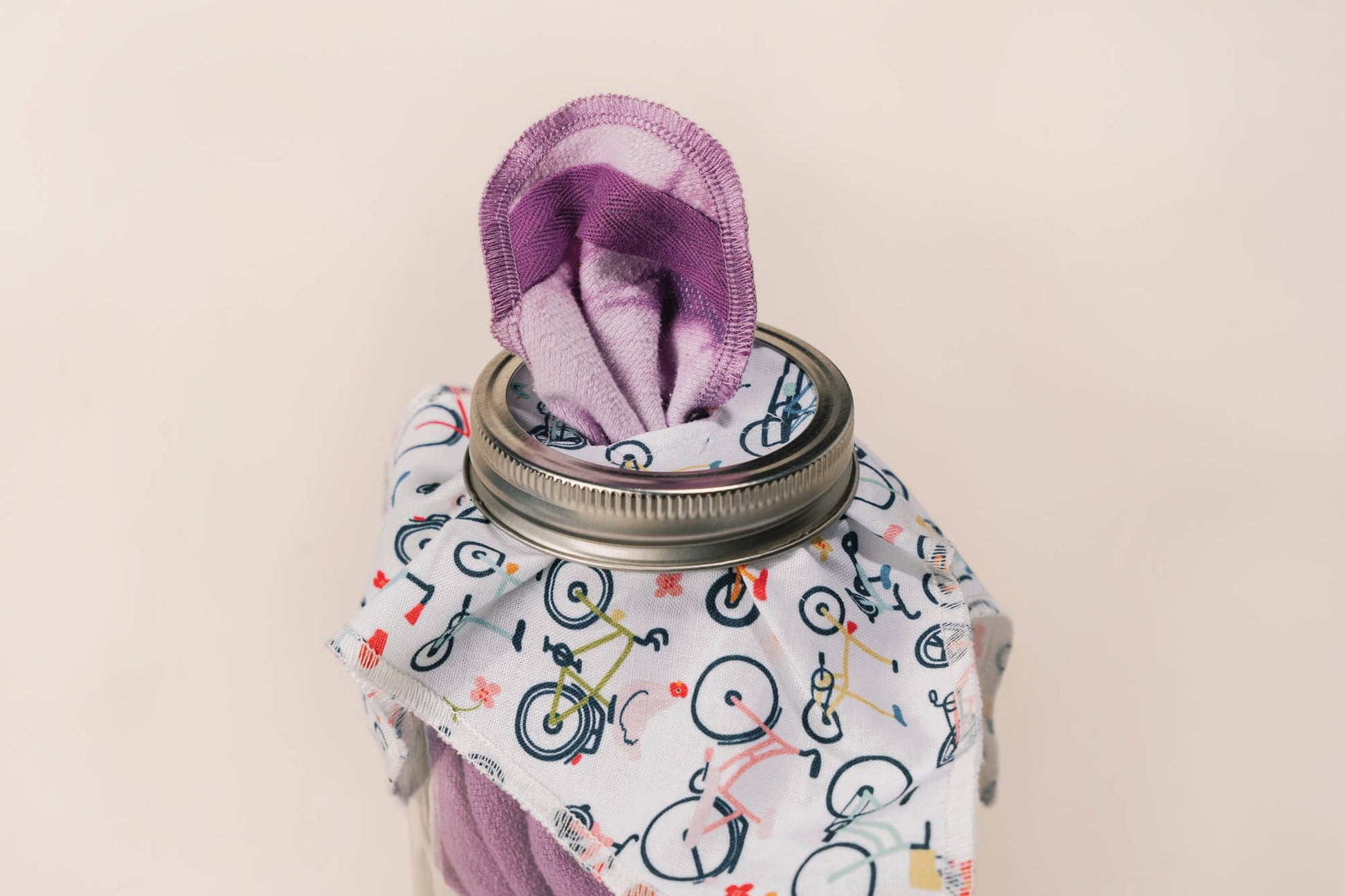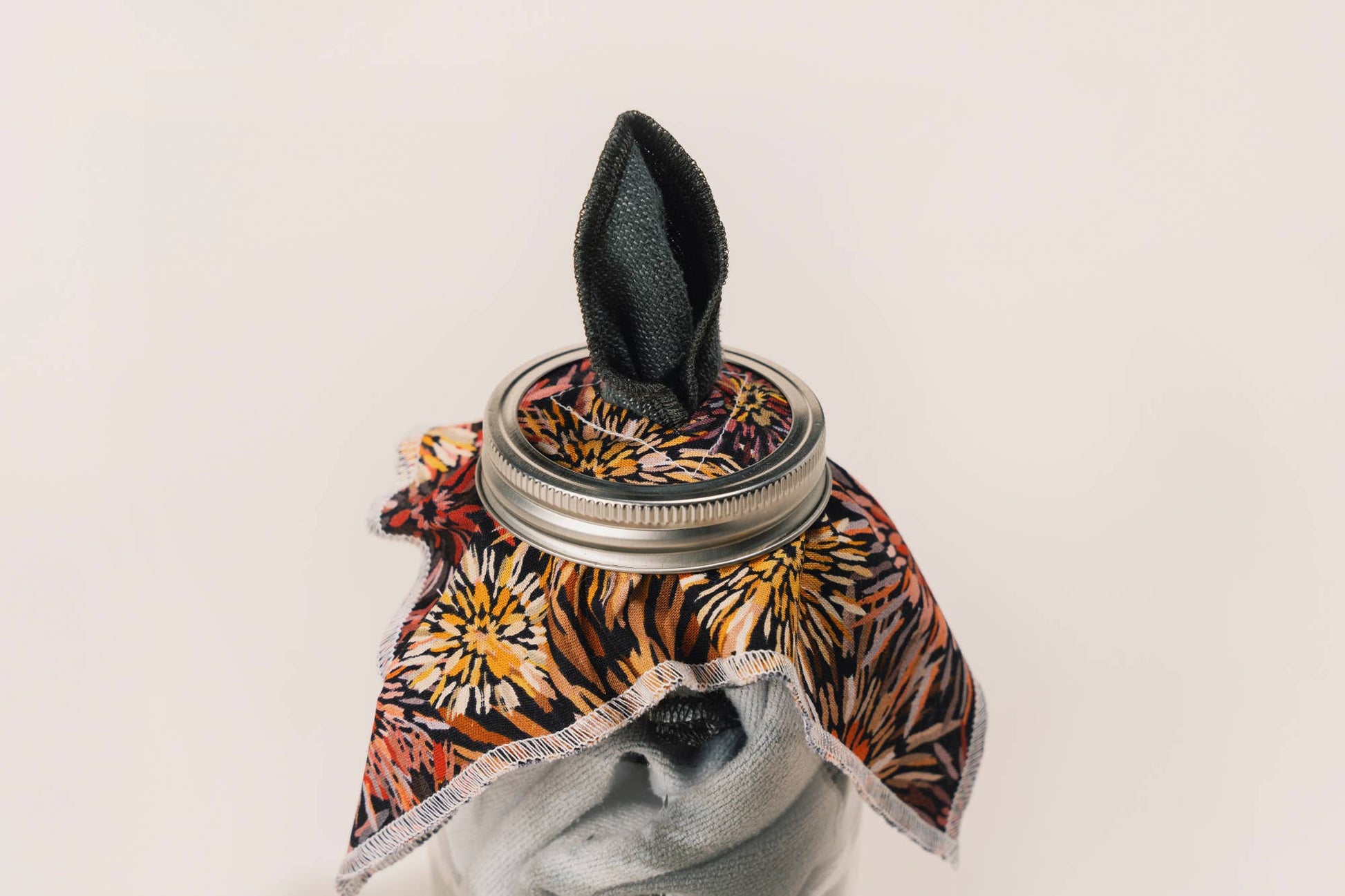 Each set includes a 32 oz wide-mouth mason jar, a triangle-shaped fabric cover with a center hole (designed to pull wipes like a dream), the mason jar ring to hold it all in place, and 10 reusable cloth wipes. These wipes are 8” x 7”, made from upcycled fabric that’s soft, durable, and totally safe for sensitive skin. Use them as napkins, tissues, or whatever life throws your way.